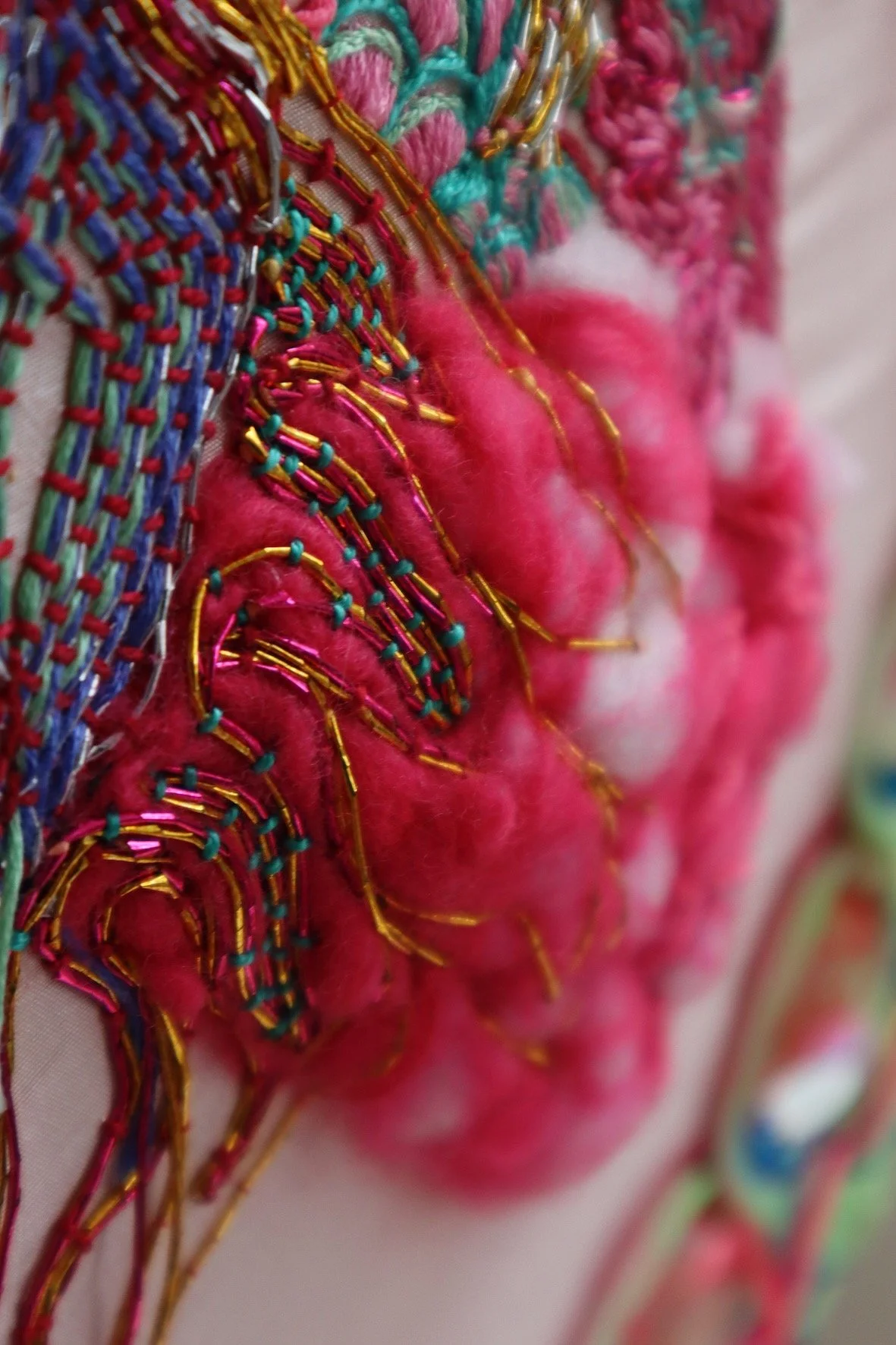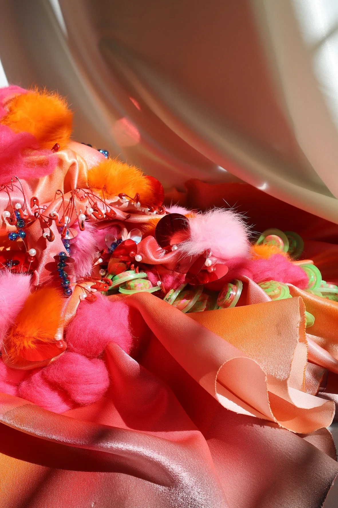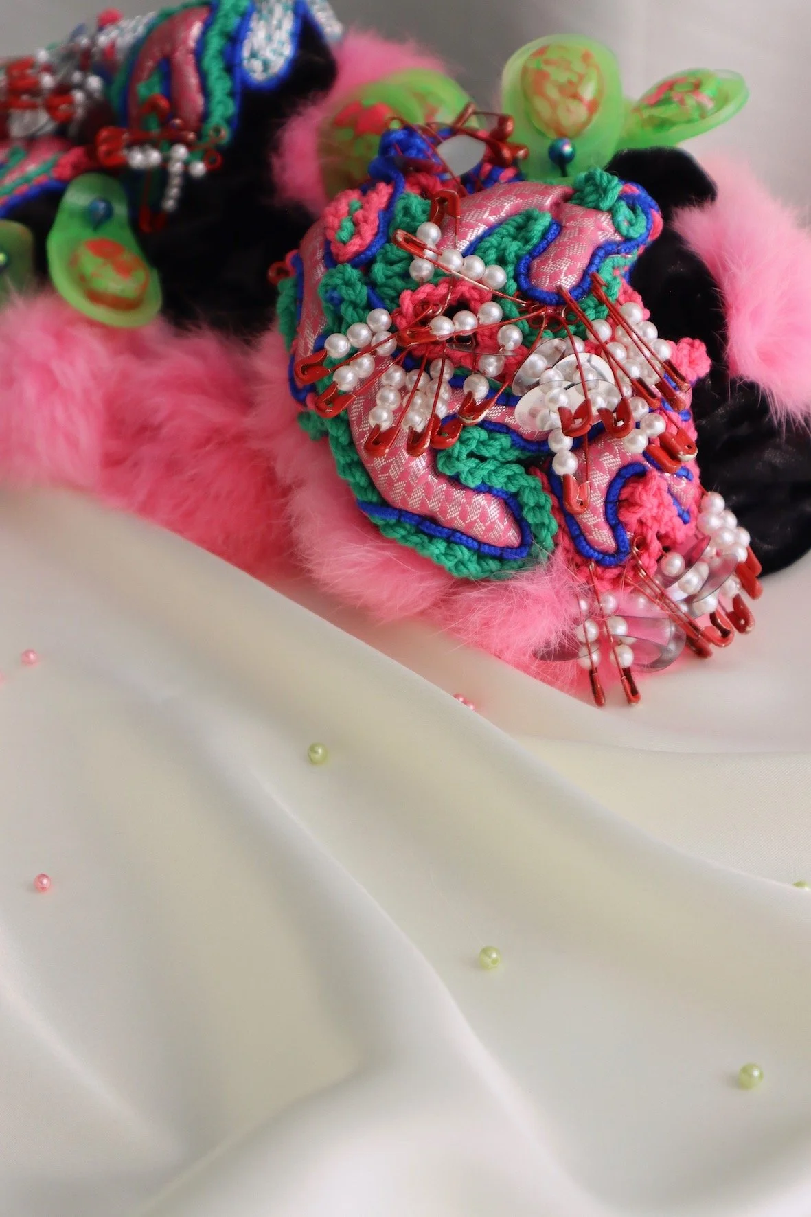 “Reconnect with the Divine Self” is a series of textile installations that reinterpret traditional Taiwanese and Chinese embroidery techniques through personal narrative and sacred cultural symbolism.